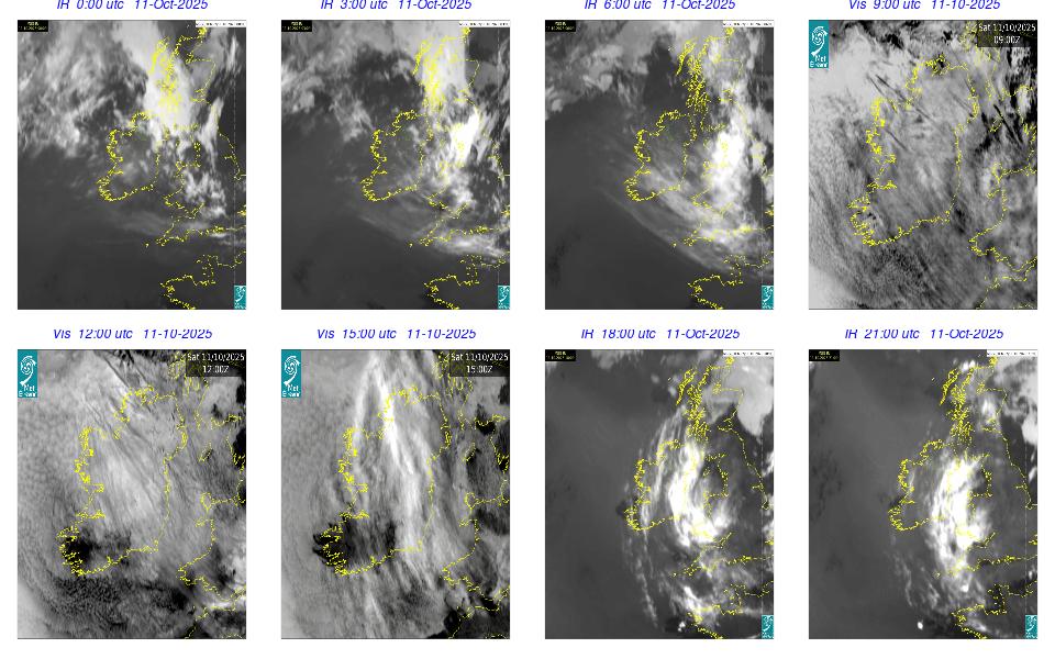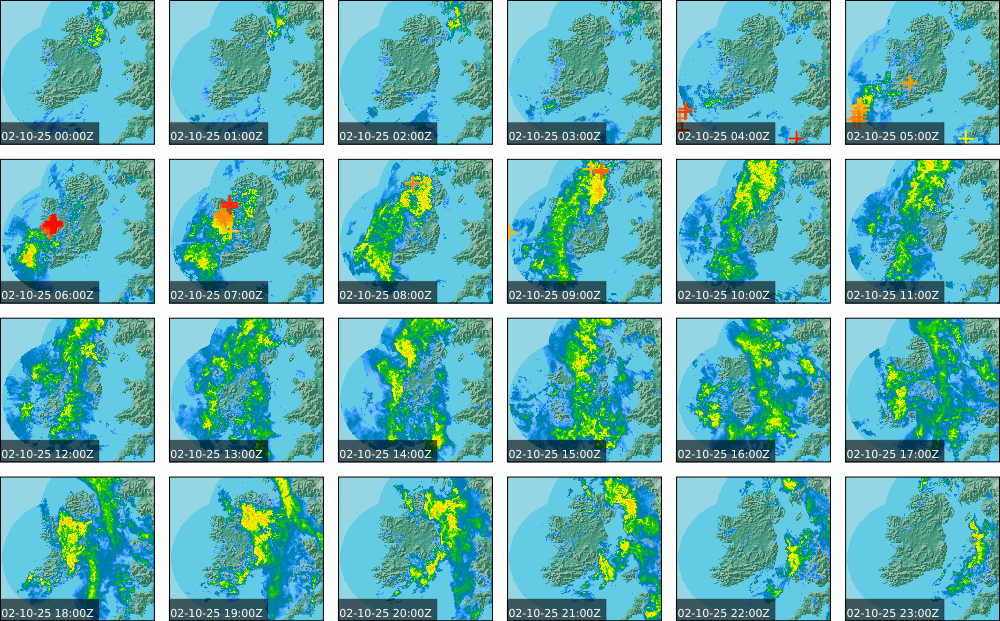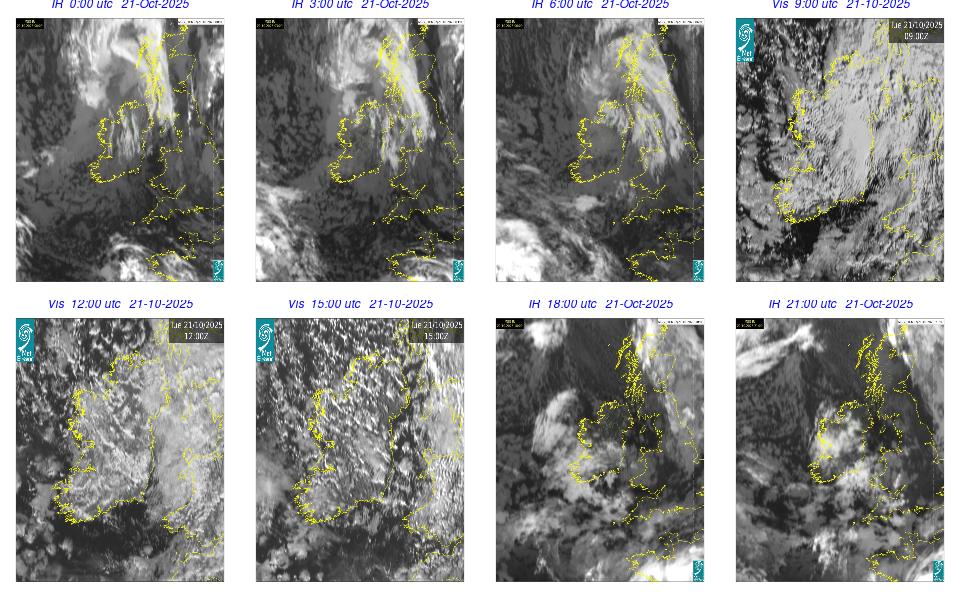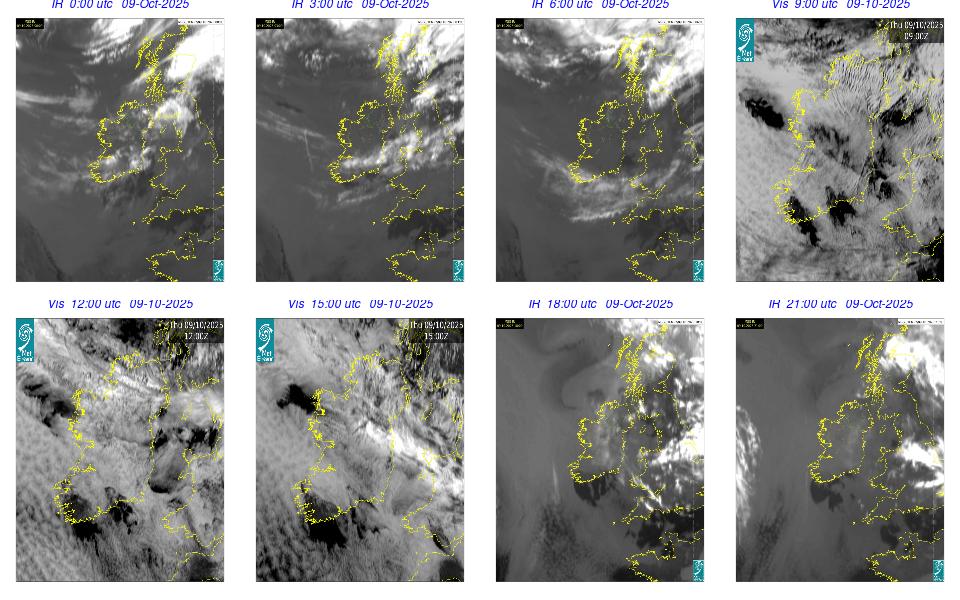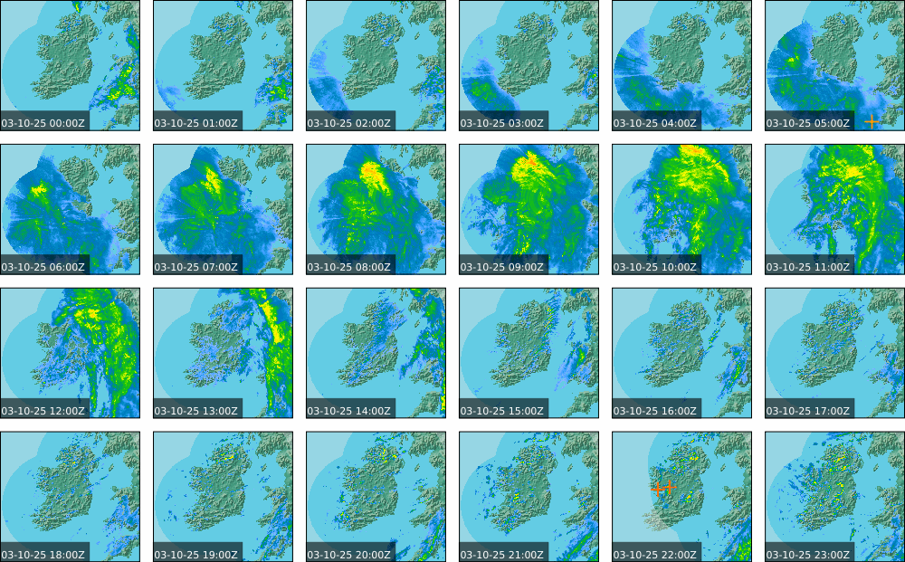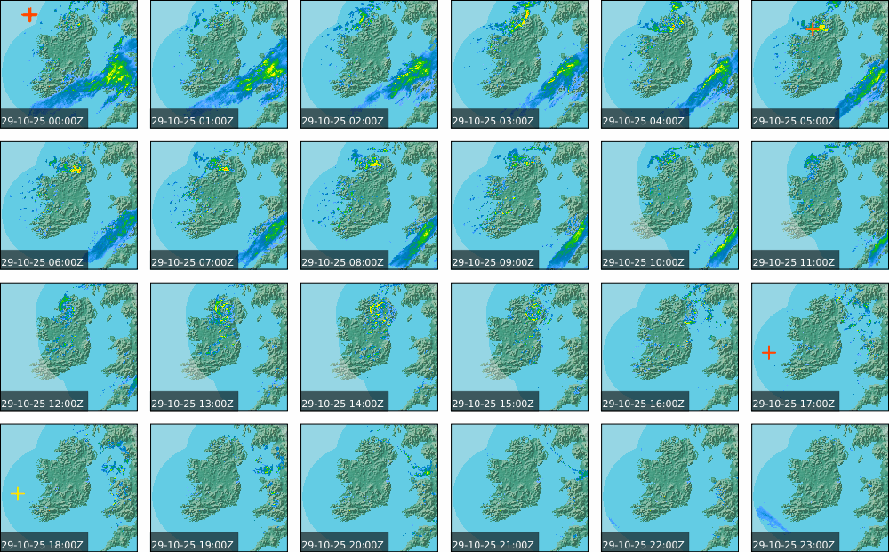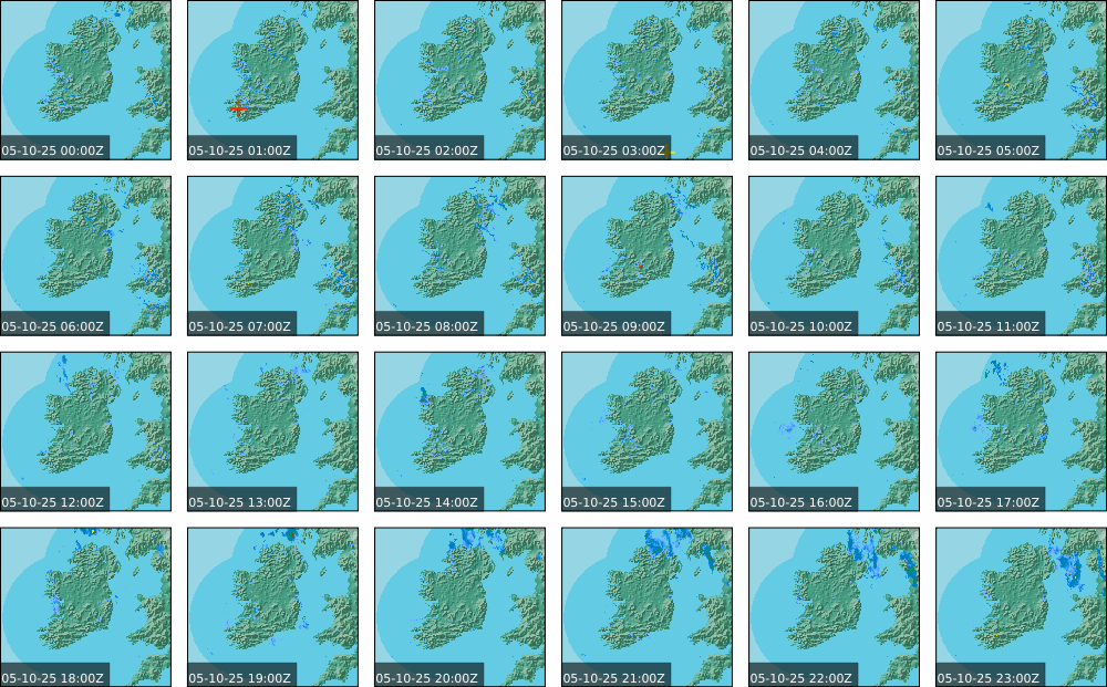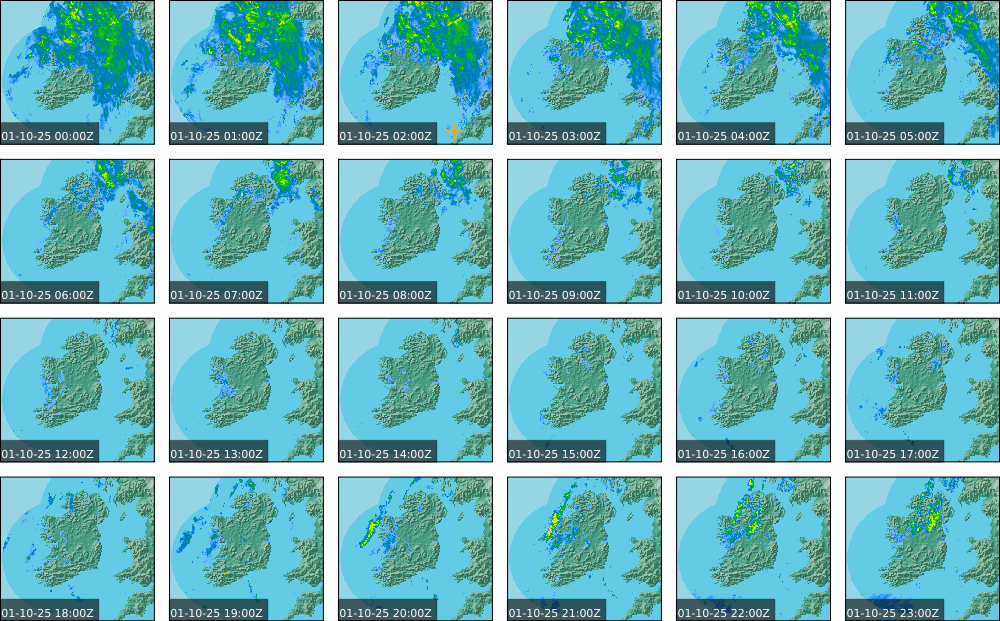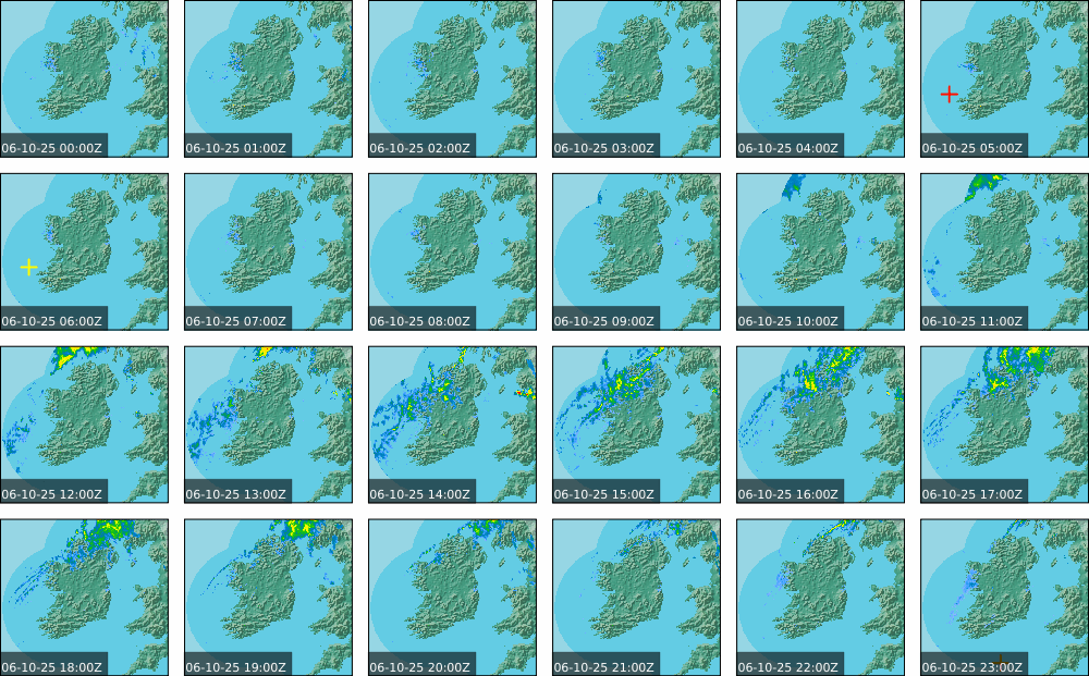 A depression centred to the south of Roches Point continued to track eastwards, and moved into southwest Britain during the day. A north to northwesterly airflow followed over Ireland Showery rain became confined to eastern seaboard and the southwest by early morning. Mist and fog developed overnight. The rain affected the eastern seaboard until the early evening. Scattered showers became more widespread during the evening affecting the southwest, west and north predominately.