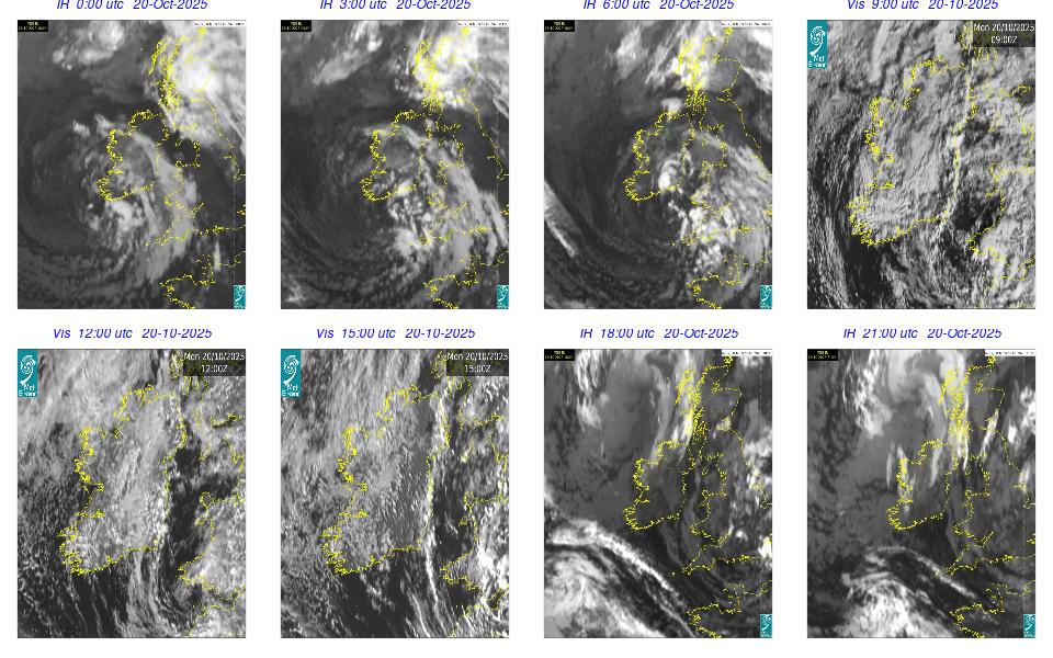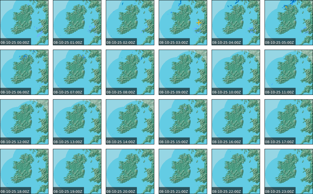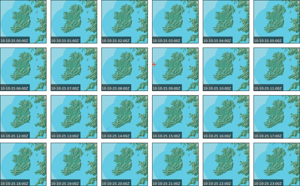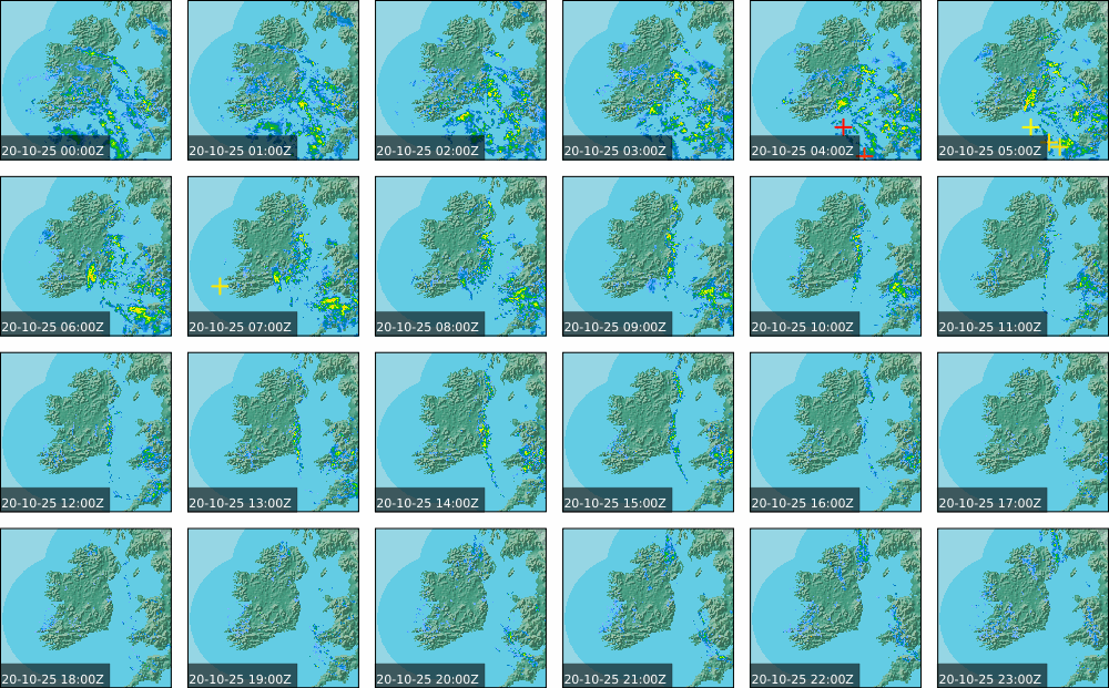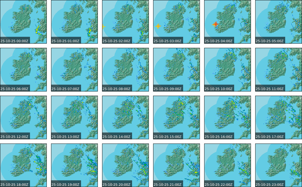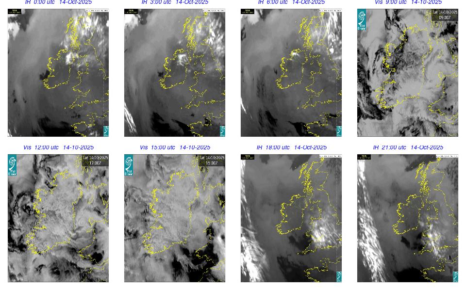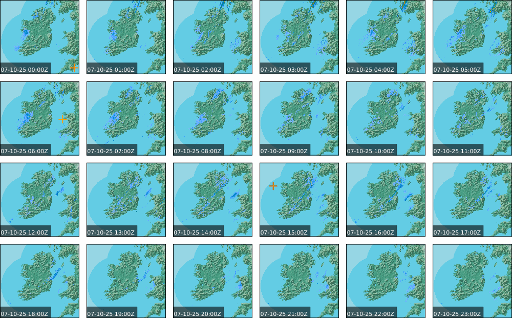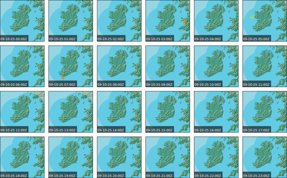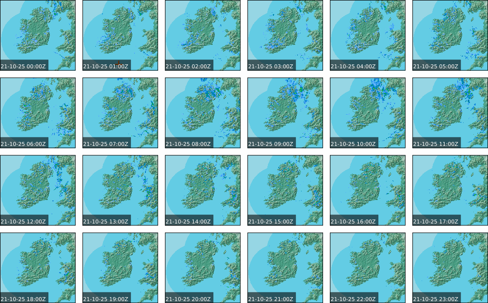 A depression centred to the south of Roches Point continued to track eastwards, and moved into southwest Britain during the day. A north to northwesterly airflow followed over Ireland Showery rain became confined to eastern seaboard and the southwest by early morning. Mist and fog developed overnight. The rain affected the eastern seaboard until the early evening. Scattered showers became more widespread during the evening affecting the southwest, west and north predominately.