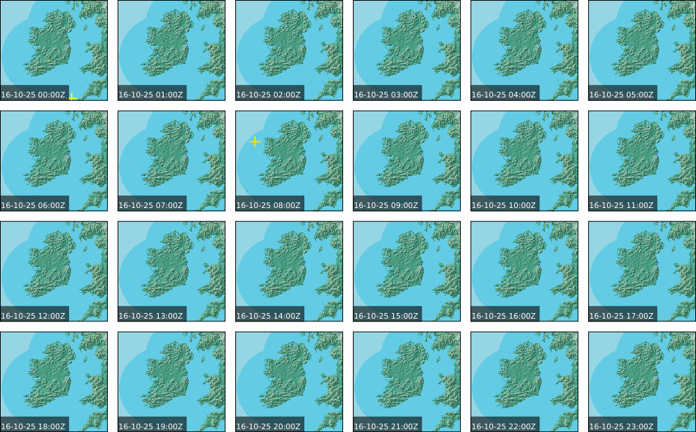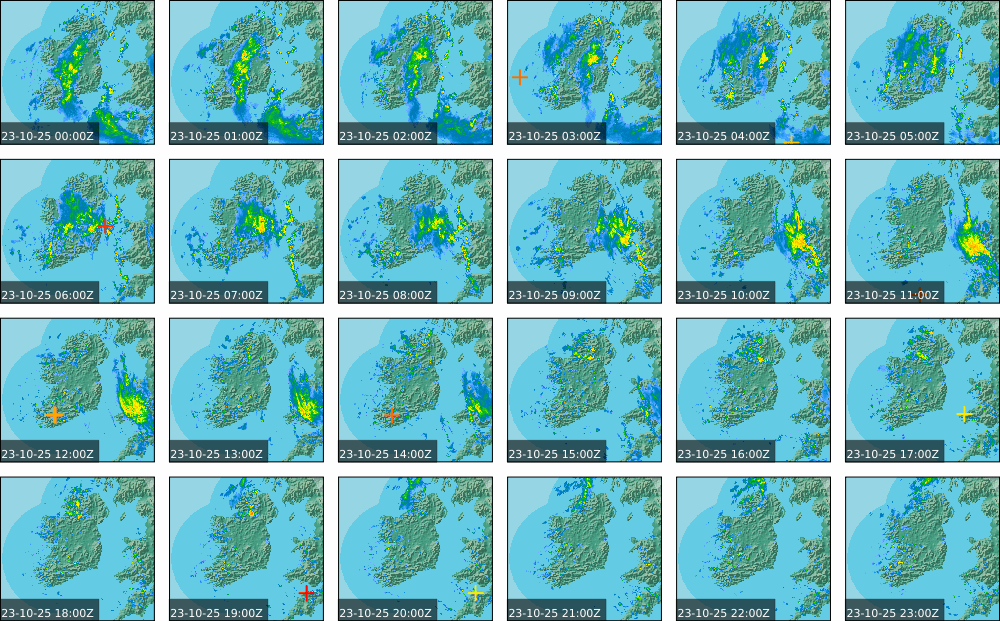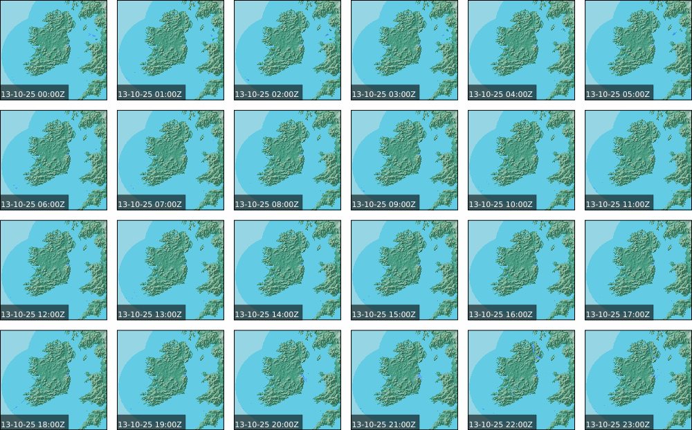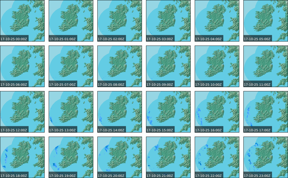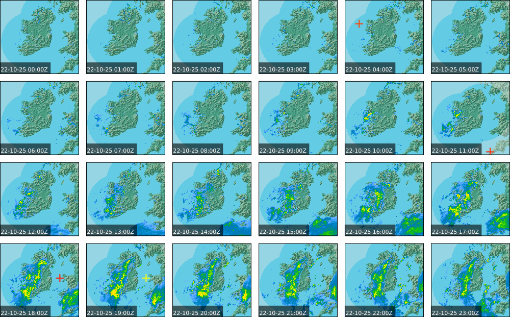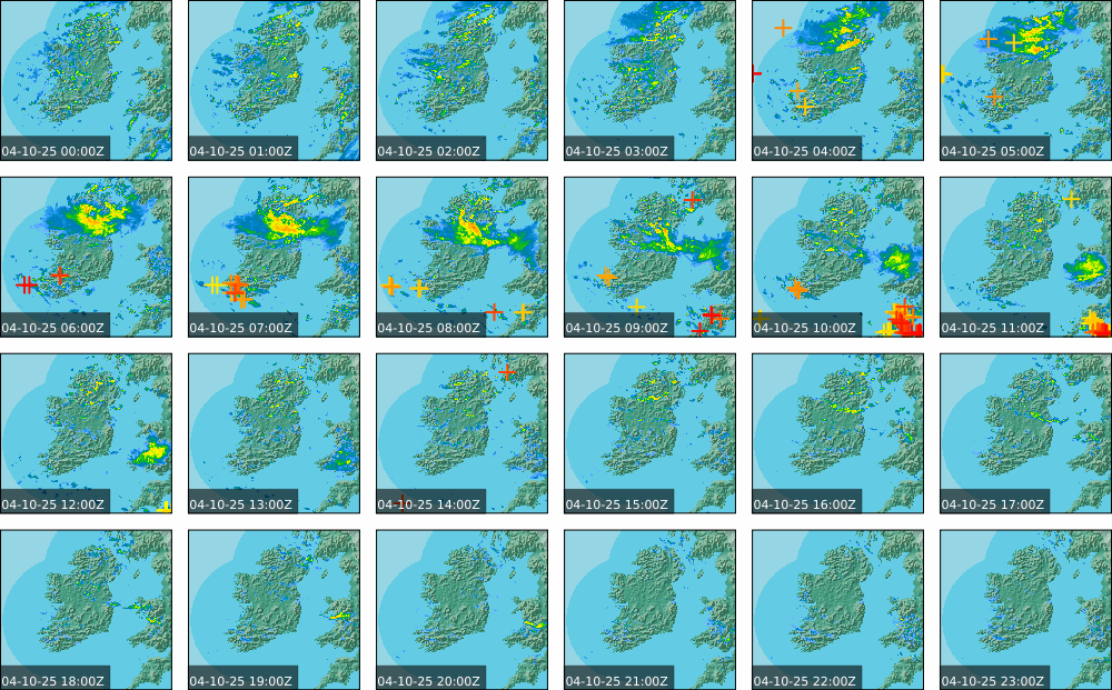 Low pressure of lay over Ireland with an associated wrap around front. High pressure of centred in the Atlantic extended a weak ridge southeast towards Iberia. Widespread showers to start, drier in parts of the North. These showers persisted over the southern half of the country throughout the day and turned heavy at times. Some sunny spells further north, However rain moved in over the north and west in the evening. Coming into nightfall, it was drier with just some patches of rain and drizzle.