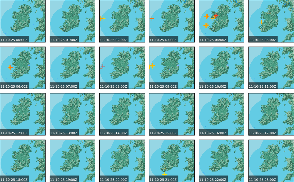 A wet and blustery day, with widespread heavy rain, especially across western and southern areas. Embedded thunderstorms also occurred in places. It was dry for a time early on in eastern counties. Southerly winds increased to fresh and gusty, becoming strong near coasts. During the evening and overnight, blustery, heavy rain cleared eastwards into the Irish Sea early in the night. Long clear spells followed, though scattered heavy showers affected the north, and rain arrived into the southwest later in the night. Fresh and gusty southwest winds moderated overnight, before strengthening again towards dawn.