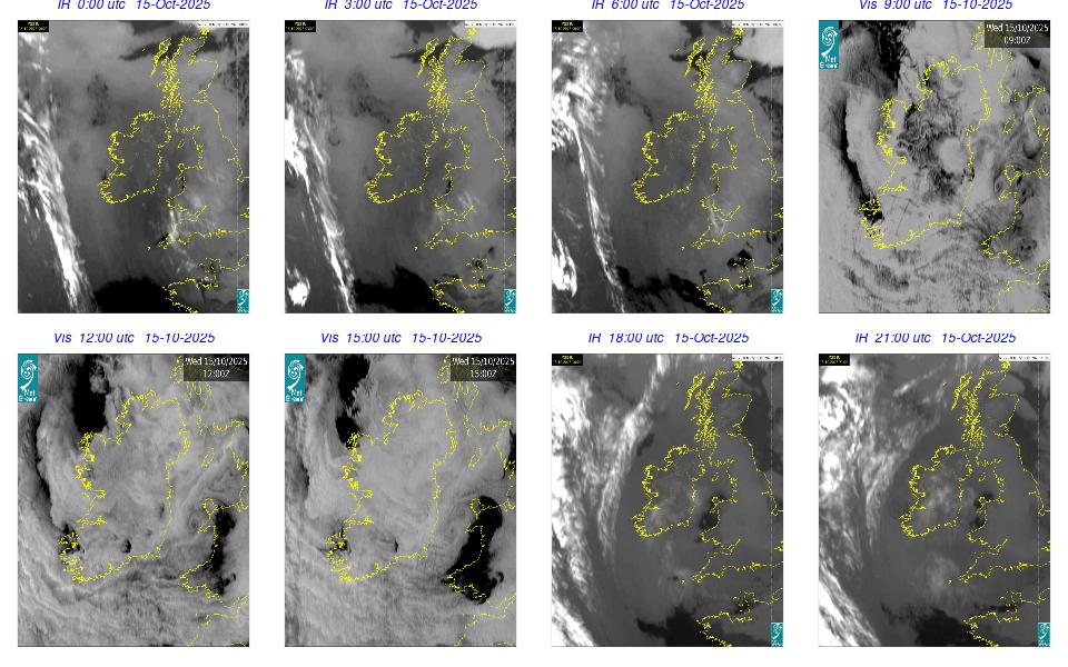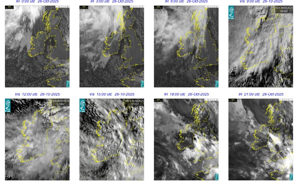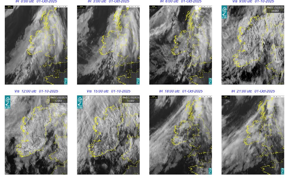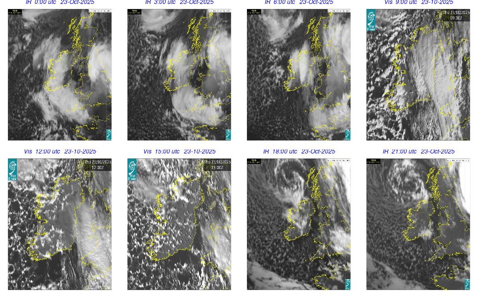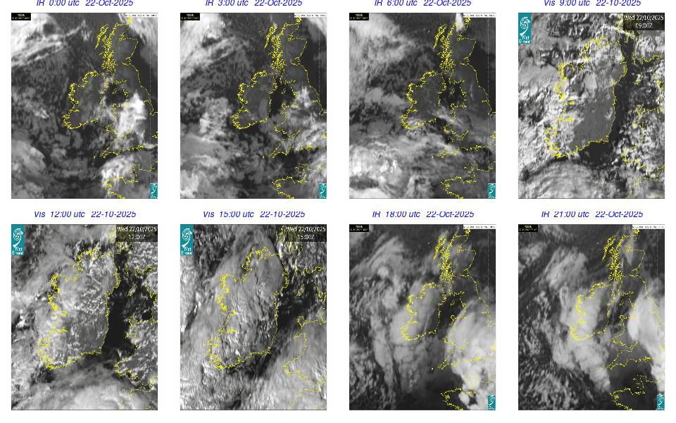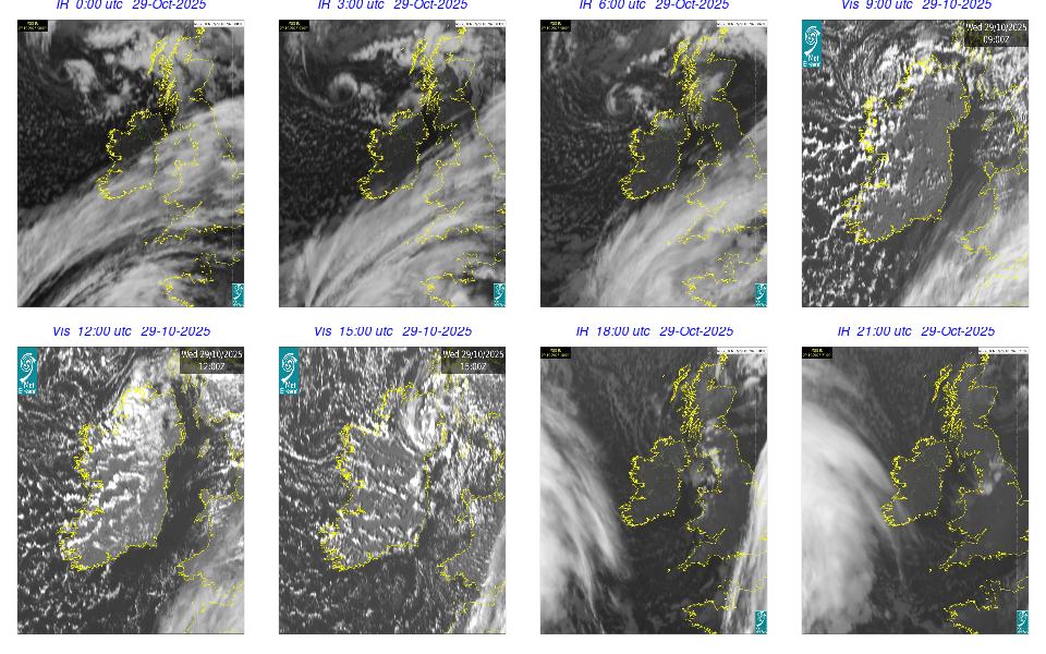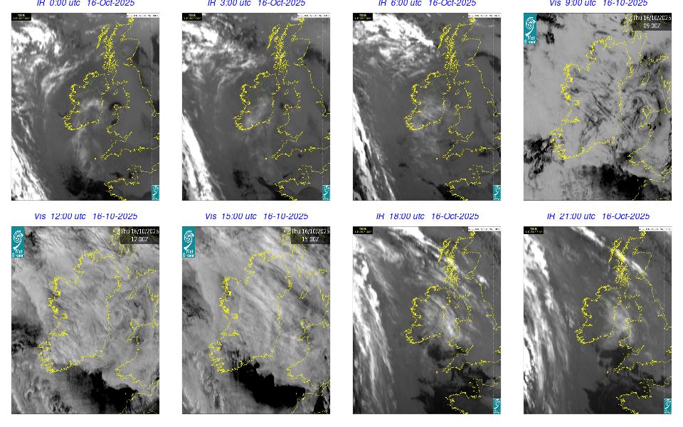 During the day Ireland lay in a strong to near gale northwesterly airflow between Storm Amy with its central pressure to the east of Shetland, and an anticyclone to the southwest of Ireland. The day was mostly cloudy and dry with just a few scattered light showers. Outbreaks of rain and drizzle developed in the West and Northwest during the first hours of the day and in the evening. The night remained mostly cloudy with patchy rain and drizzle, mainly in the Northwest, along with mist patches, while clearer spells developed in the South and extended northwards overnight.