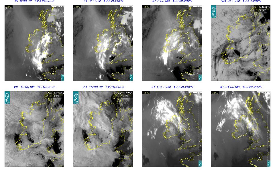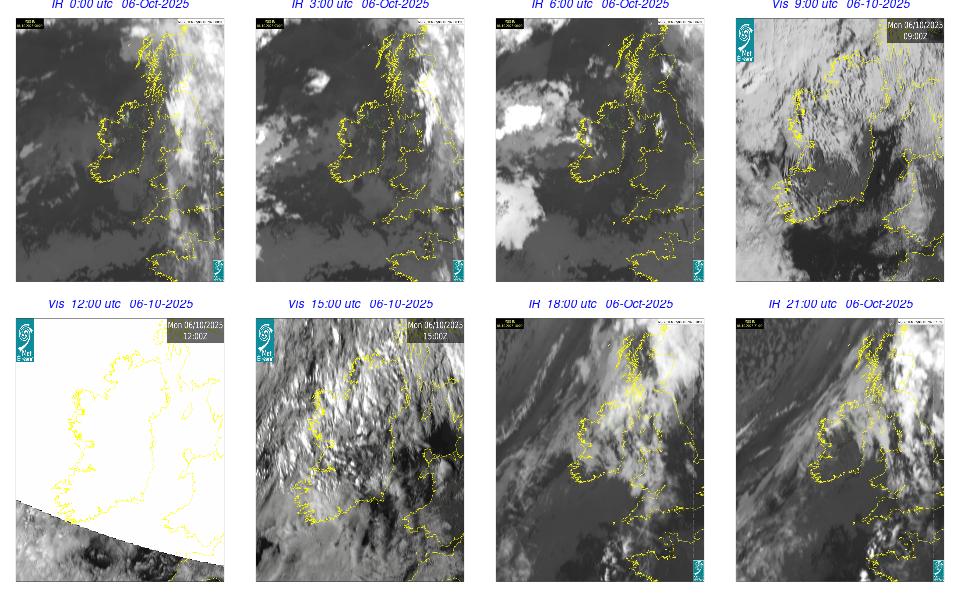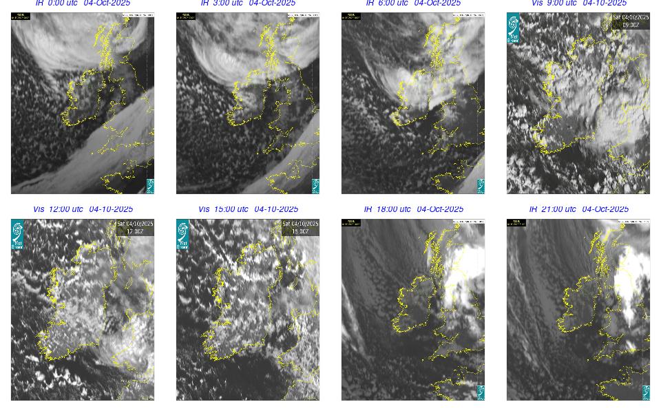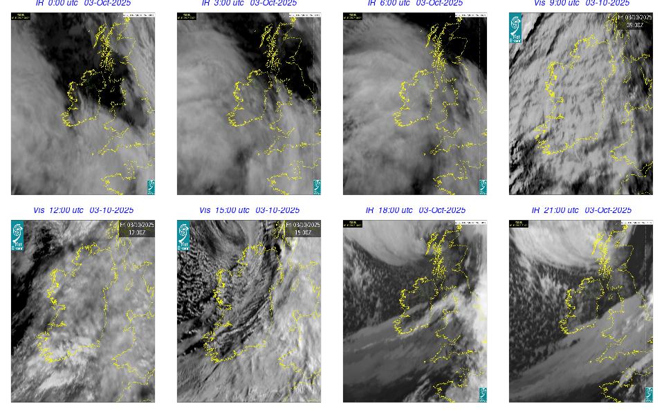 A depression of centered to the northwest of Scotland generated a moderate to fresh westerly airflow over Ireland. It was cloudy overnight with rain and drizzle moving in from the Atlantic. The morning continued mostly cloudy with scattered showers. Conditions improved through the afternoon, with some bright spells developing here and there. The showers began to become more isolated through the evening and night.