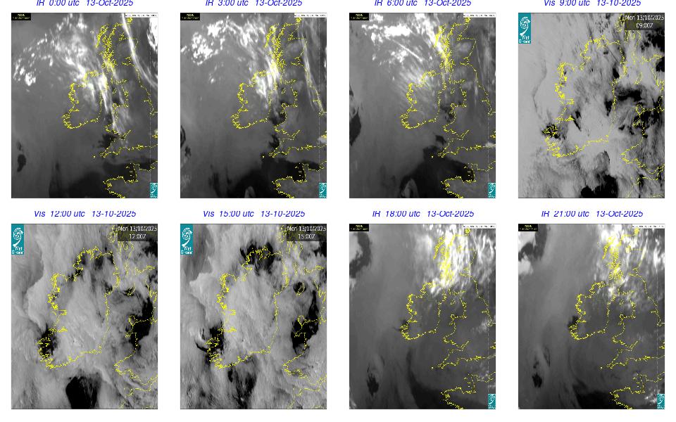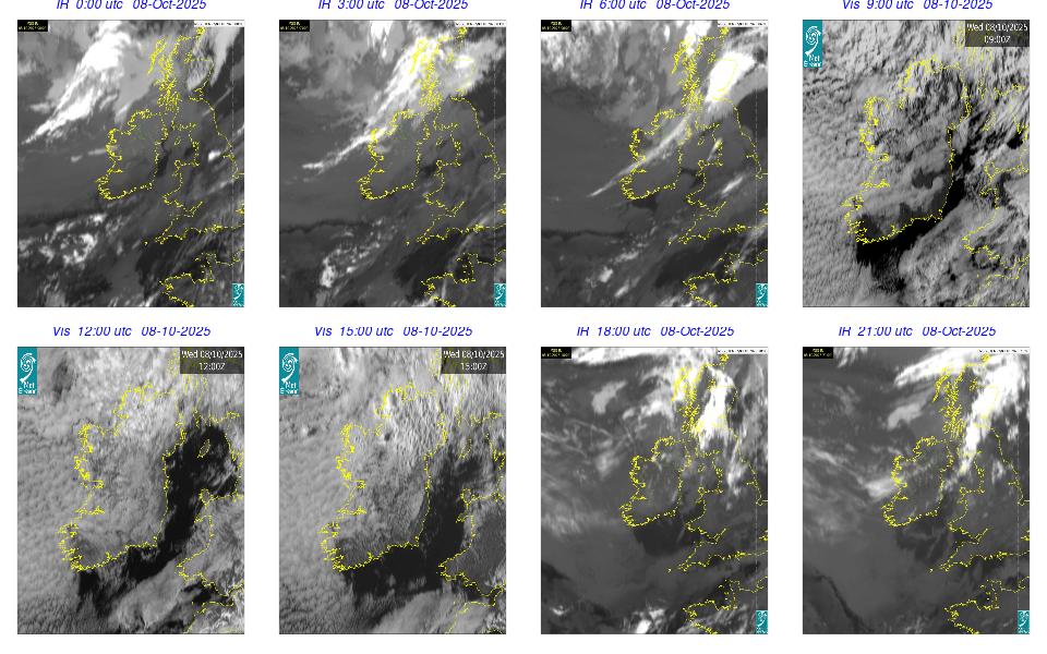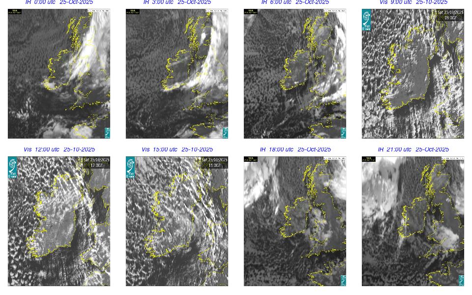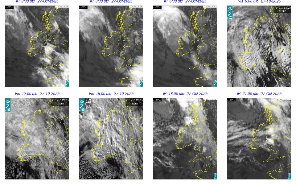 Ireland lay in a strong northwesterly airflow, between a depression near Denmark and an anticyclone in the mid-Atlantic. Mostly cloudy day with outbreaks of rain and drizzle spread southeastwards across the country. The rain cleared to scattered showers over the northern half of the country in the afternoon. Mostly cloudy evening with outbreaks of rain and drizzle lingering in the South and scattered showers and clear spells elsewhere.