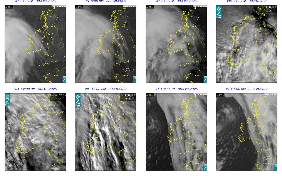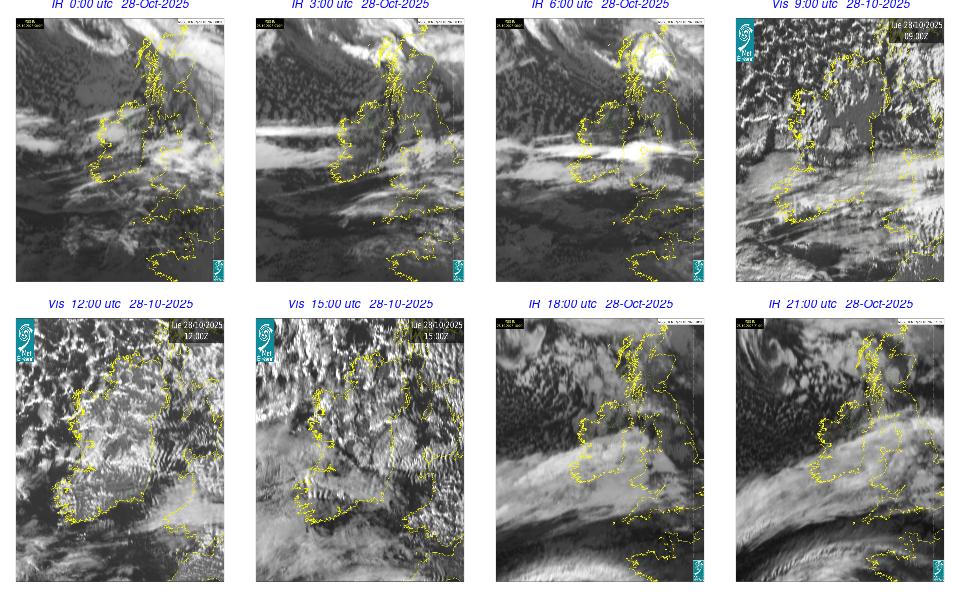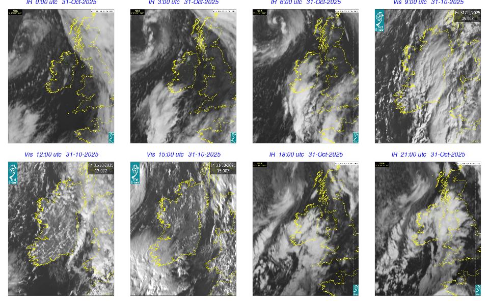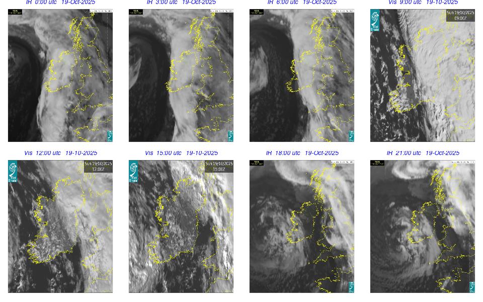 A depression centred between Iceland and Greenland maintained a fresh to strong southerly airflow over Ireland through-out the day. An overall very cloudy with gustier winds especially on the western coast of Ireland. Rain on the west coast moved northeast over Ireland in the early morning and late evening. Some fog developed in the late evening on western and southwestern coasts.