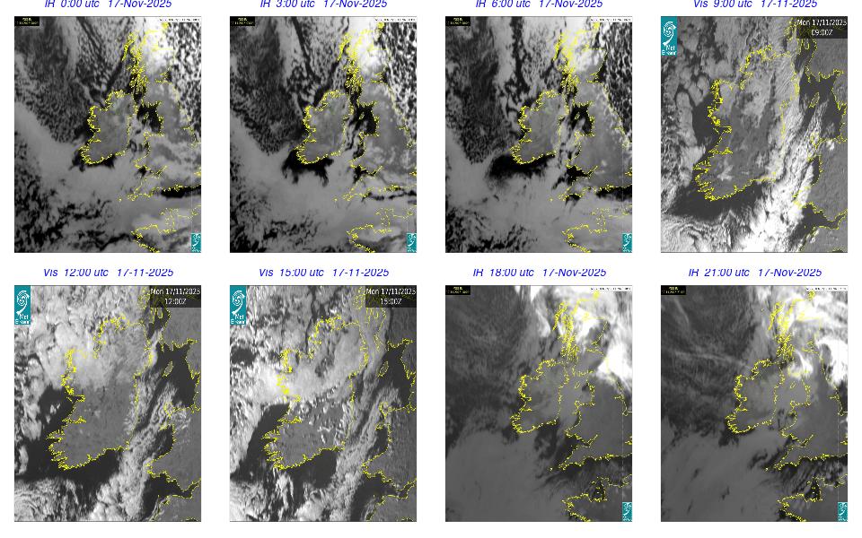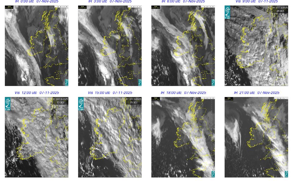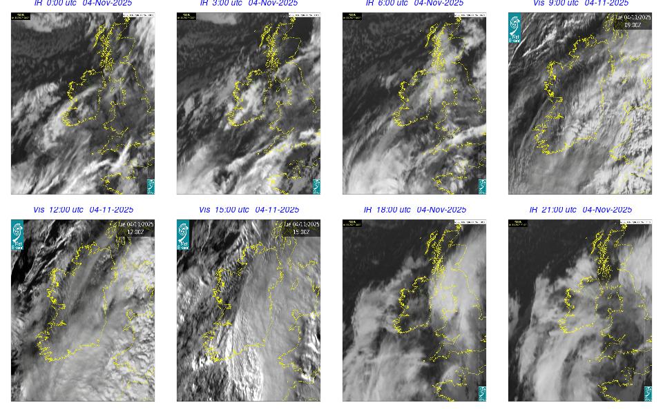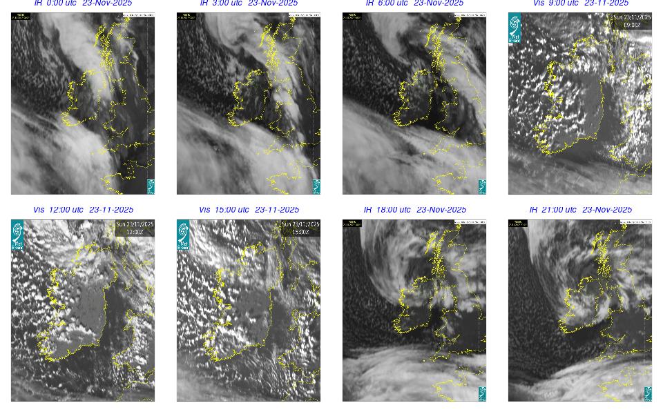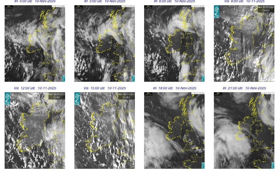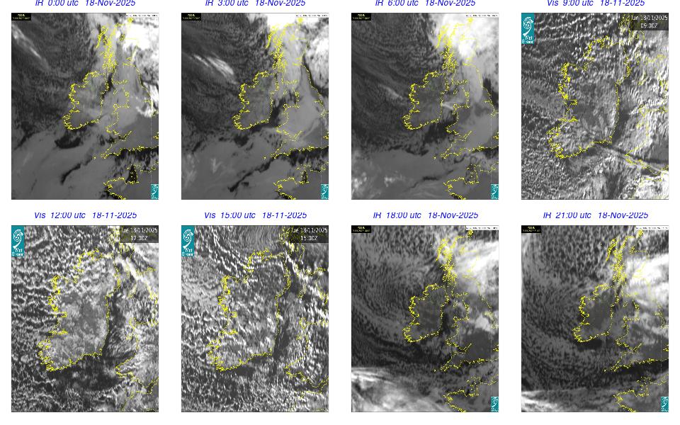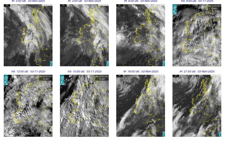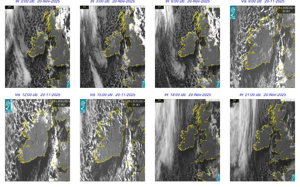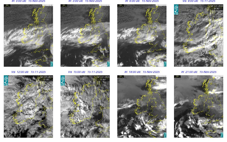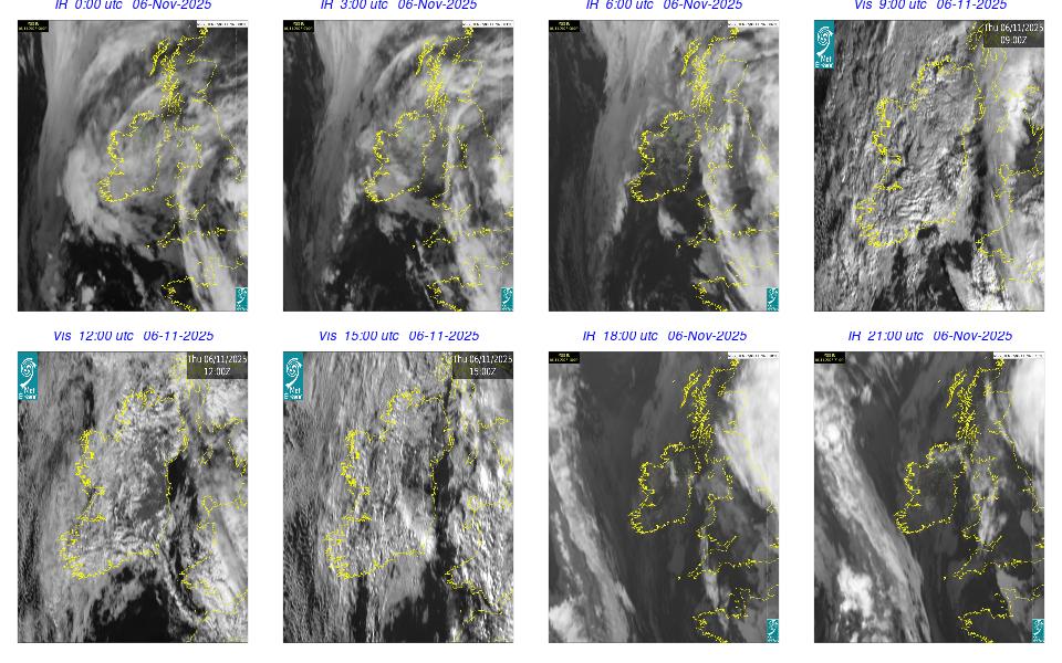 Low pressure lay to the west of Ireland with associated wrap around fronts. A broad area of high pressure lay over central Europe. An overall cloudy and rainy day occurred with cloud clearing in the southern half of the country by the late evening. Rain was heavy and moved northeastwards over Ireland, clearing by the evening time, with some isolated showers overnight. Some fog developed overnight, especially on the south and southeast coasts.