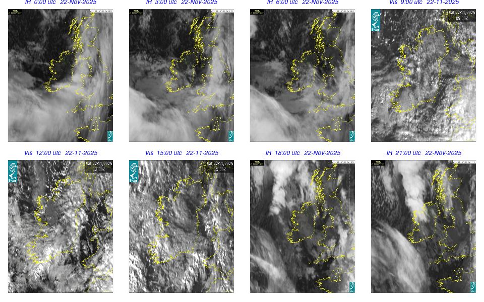 Ireland lay in a moderate to fresh northwest airflow between a depression of 968 hPa centred in the North Sea and a depression of 954 hPa centred southeast of Greenland. A ridge of high pressure extended across Ireland from the south. Started dry with just isolated showers and sunny spells but turned cloudier through the day with rain in the west and southwest in the afternoon extending eastwards by evening.